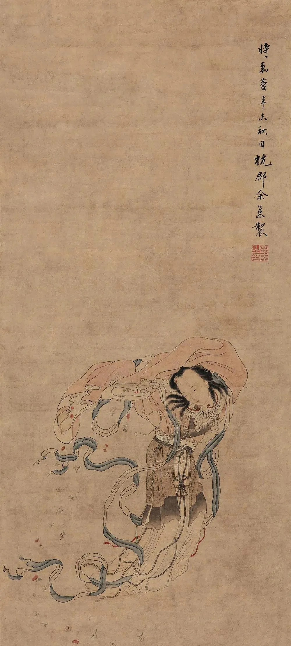 这位被戏称为“余美人”的画家,笔下的仕女堪称“反套路”教科书。别的画家画美人,恨不得把脂粉抹出三斤厚,他倒好,偏要给美人“卸妆”。《落花独立图》里,女子素衣倚门,团扇半遮面,连发髻都梳得松松垮垮,活脱脱一个“佛系美人”。可偏偏是这份漫不经心,反倒让观者品出了“落花人独立,微雨燕双归”的孤寂——原来,美人愁的不是胭脂水粉,而是深闺里的寂寞啊!