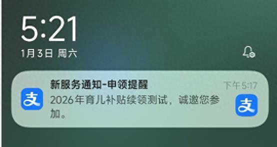 1月4日消息股管家,2026年育儿补贴系统正在进行续领测试股管家,已有人收到支付宝的邀约并完成申领。